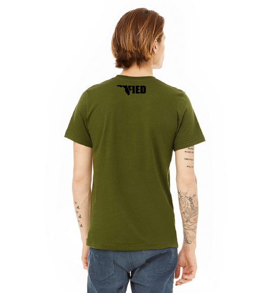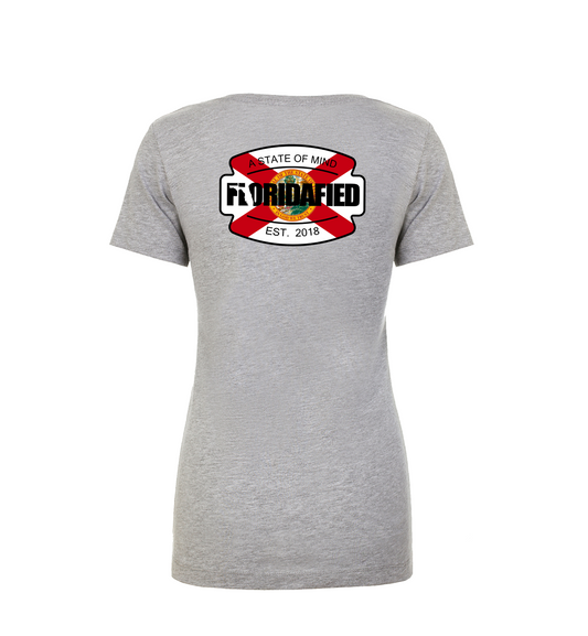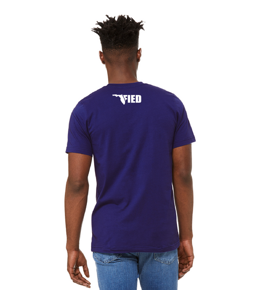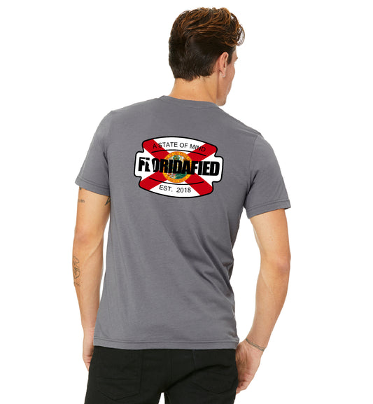 Lightweight Tri-Blend Tee sporting the Original Floridafied Logo on the front, with a small Icon Logo on the back.