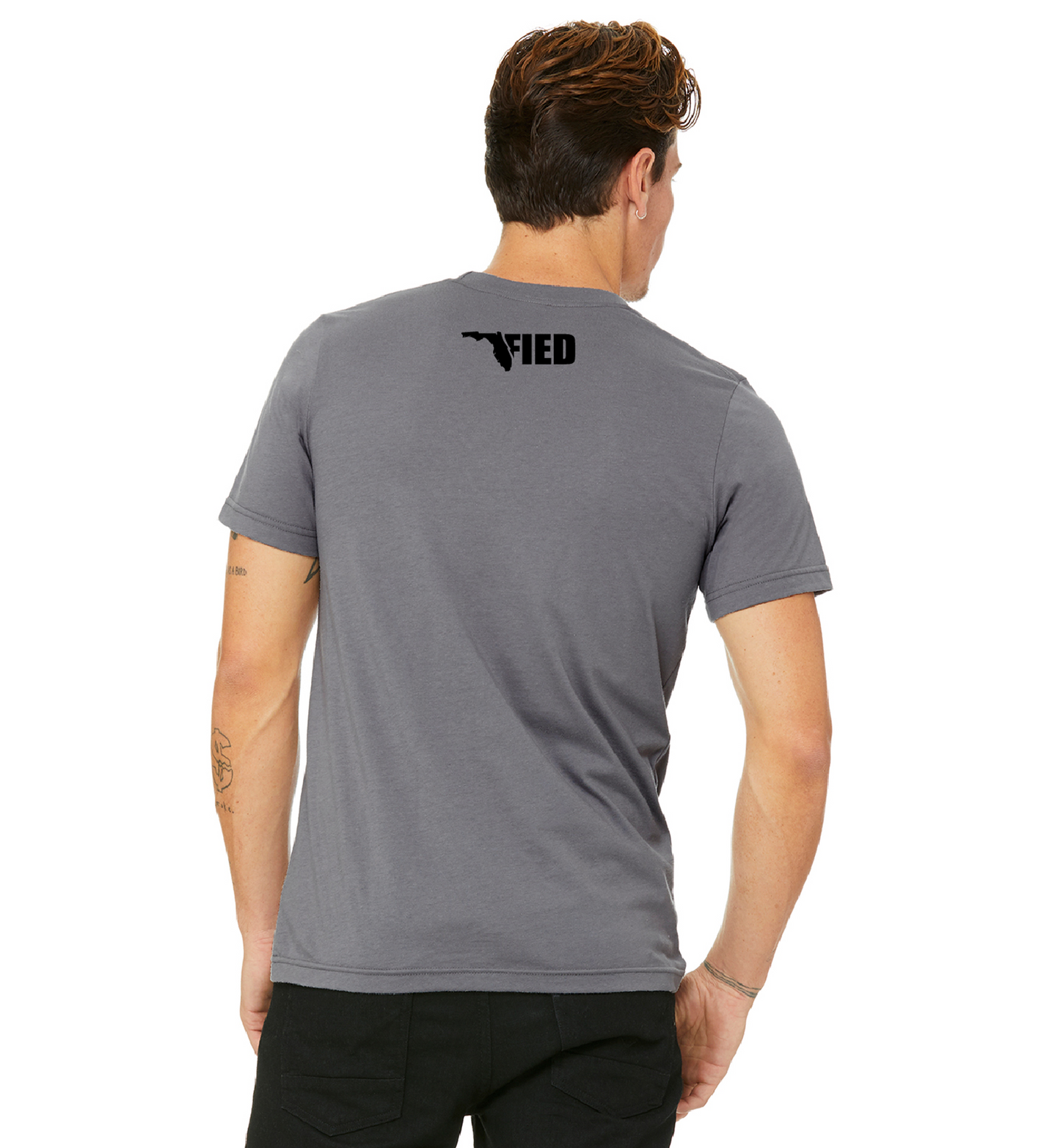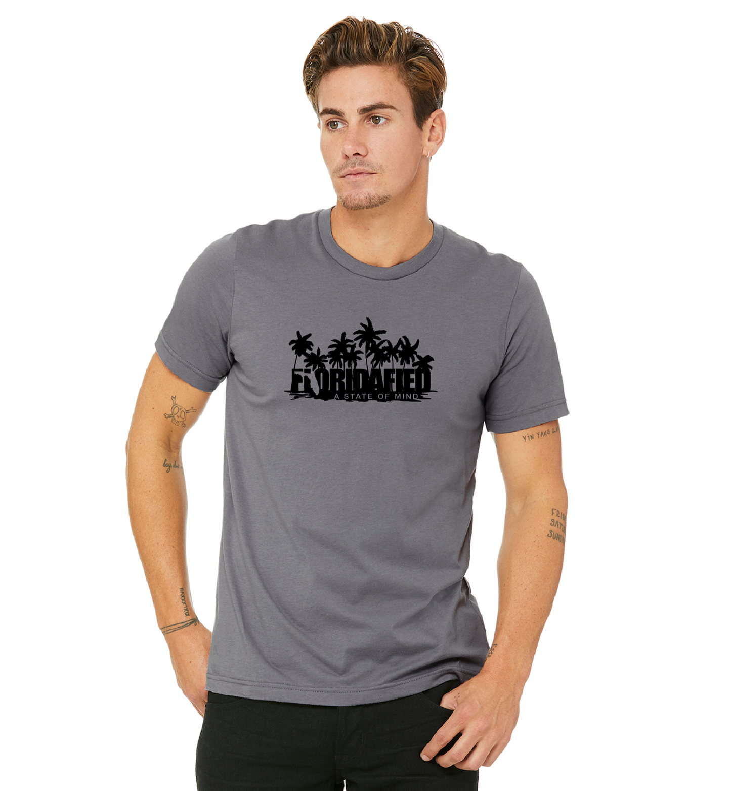 Lightweight Blend Tee sporting the Original Floridafied Logo with Palm Trees on the front, with a small FLFied Icon Logo on the back.